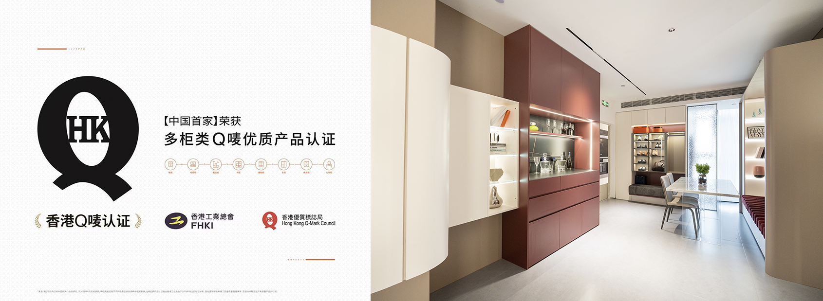 憑借精準嚴苛的品質追求,2025年4月ORI元創屋全屋定制9大系列產品均獲香港Q嘜優質產品認證,包括鞋柜、電視柜、餐邊柜、書柜、儲物柜、衣柜、床頭柜、化妝柜、箱體床系列。Q嘜認證(Q-Mark計劃)是由香港優質標志局發起。香港優質標志局于1978年由香港工業總會設立,距今已經有40多年的歷史,旨在嘉許那些構建了完備質量管理體系,且能持續穩定生產高質量產品的公司。